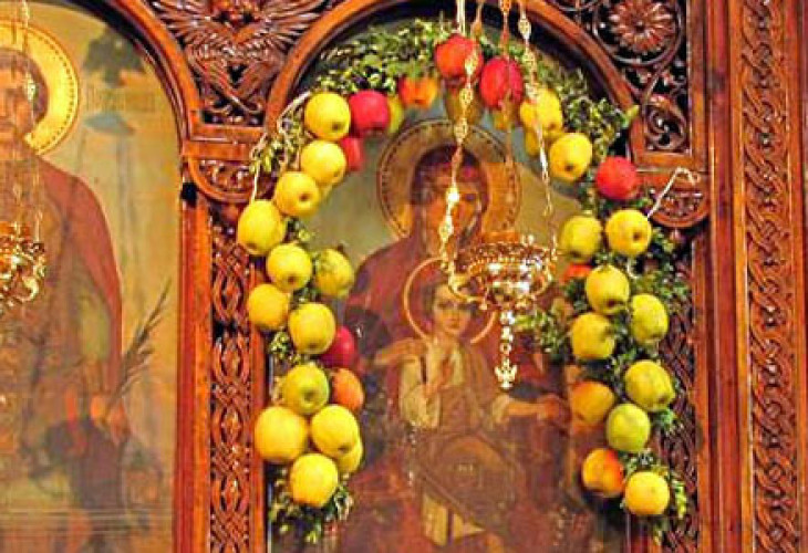Оттогава възниква и традицията чудотворната икона на Божията Майка да се обкичва с венци от ябълки още от Първия петъчен Акатист на Великия пост, когато се чете първата статия от Богородичния акатист. Те прeстояват на чудотворната икона до празника, т. е. 5 седмици, и след прочитането на последния - Пети акатист, се раздават на безплодните жени, за да се сдобият с рожба.