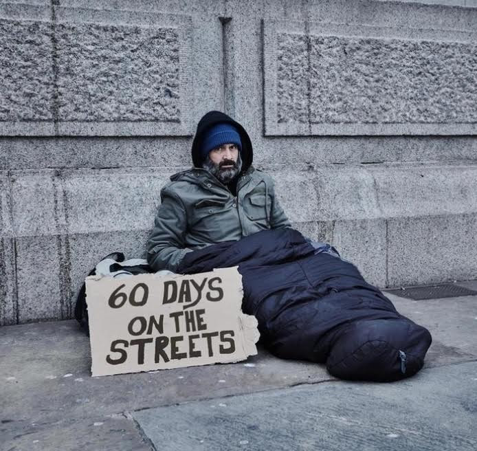 Eд Стафорд е бивш капитан от британската армия, авантюрист и пътешественик. В рамките на снимките на документалния филм "60 дни на улицата" за Channel 4 той се решава на тежък експеримент.