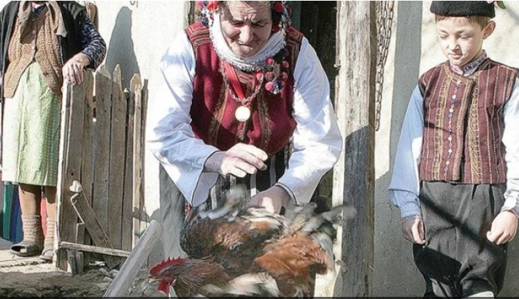 След като заколи птицата, той прави кръстен знак с нейната кръв по челата на всички момченца в къщата, за да бъдат здрави през цялата година. С кръвта на петела се рисуват кръстове и по външните страни на вратите и портите. Понякога това става направо с отрязаната глава на петела, която след това се забучва на портата, обърната в източна посока. Краката на птицата се хвърлят на покрива на къщата, а перата й се запазват.