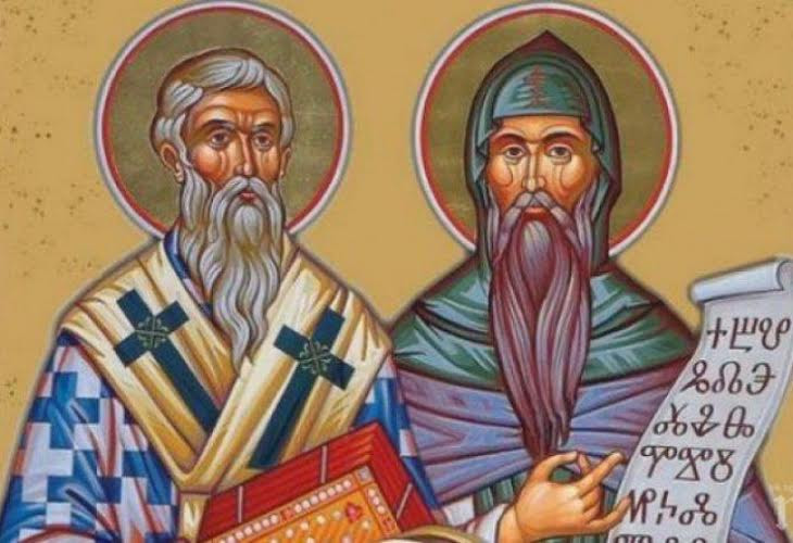 Светите братя Константин и Методий - създатели и разпространители на първата славянска азбука - глаголицата, са канонизирани като светци за превода и популяризирането на Библията на старославянски език и за разпространяване на християнството сред славяните. Обявени са за съпокровители на Европа заедно със св. Бенедикт от папа Йоан Павел II./Blitz.bg