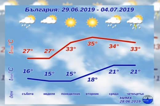 „45,9 градуса на сянка са измерени във Франция в петък, което е абсолютен рекорд. За България е характерен майско-юнския максимум на валежите. Очаква се юли месец да стане по-горещо, но бурите ще са по-редки. От началото на другата седмица ще очакват температури над 30 градуса в цялата страна”, това пък каза климатоложката Зорница Спасова.