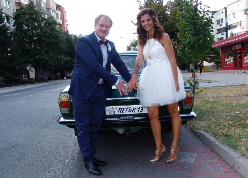 Георги Казаков и Богдана Кацарова кумуваха на семейството. Кумове и младоженци пристигнаха пред църквата в Димитровград със зелена “Волга” с табелка “Петък,13-ти”.