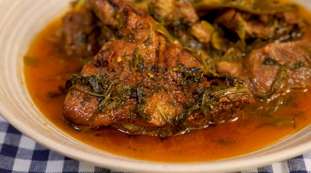 Необходими са ни следните продукти: един килограм агнешка плешка, две връзки пресен лук, една връзка пресен чесън, една връзка джоджен, една връзка магданоз, една връзка копър, сто и петдесет грама масло, сто грама брашно, две супени лъжици сладък червен пипер, една супена лъжица лют червен пипер, трийсет милилитра олио, черен пипер на вкус, сол на вкус.