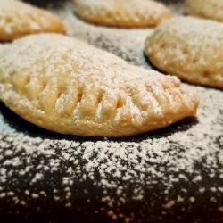 2. Да откъснете едно топче, сплескате с ръцете, поставите локума, затворите и оформете на полумесец.