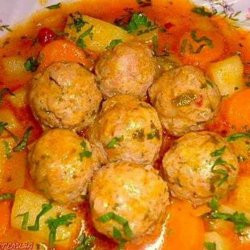 Когато яхнията с кюфтета поизстине, се поръсва със нарязания магданоз.