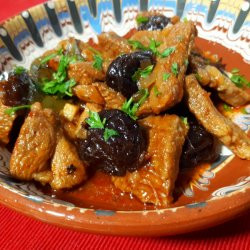 Сервирайте свинско задушено със сушени сини сливи топло, поръсено с пресен магданоз.