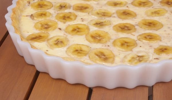 През това време се слагат в пасатора бананите, заквасената сметана, медът и ромът. Всичко се пасира, за да се получи крем. Той се разпределя върху охладения блат.