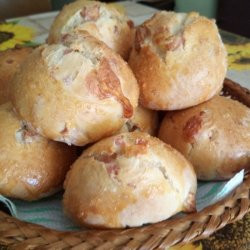 Готовото тесто разделете на 10 равни части. Оформете на питки и ги наредете върху тава, застлана с хартия за печене. Оставете за 15 минути и след това намажете със заделения жълтък, смесен с 1 ч.л. вода.