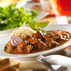 Месото се нарязва на парченца и се задушава заедно с лука. След като омекне лука се прибавят доматите, брашното, червения пипер, дафиновият лист, бахара, черния пипер, чубрицата и сол на вкус.
