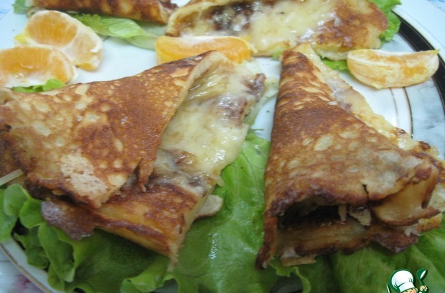 След 1-2 минути, обърнете палачинката от другата страна и поръсете с натрошено сирене отгоре, докато се разтопи.
