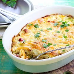 После прибавяме разбитите яйца и запичаме отново, като поръсваме с черен пипер.