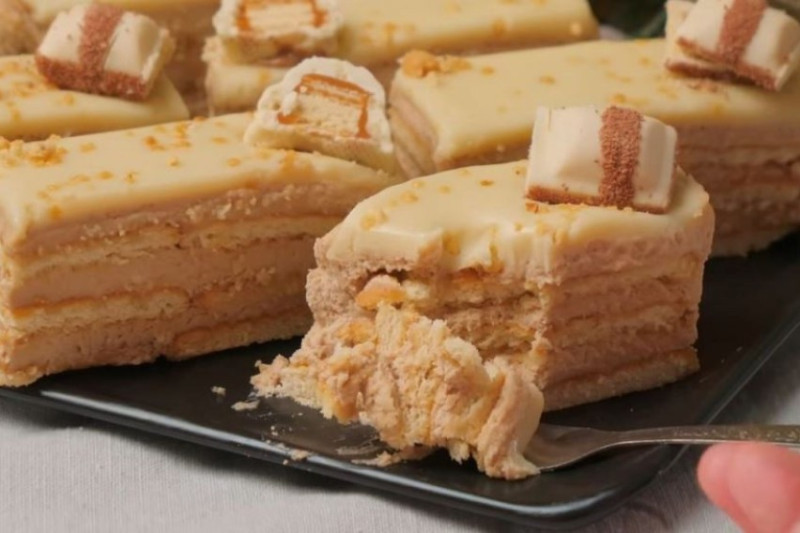 Тази торта е кремообразна, богата и се съчетава идеално с кафе или чай. За по-малко от 15 минути ще имате вкусна торта, която ще ви очарова със своя аромат и вкус.