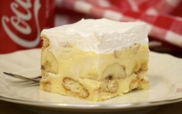 Ето какви продукти са ви необходими: 300 гр. обикновени бисквити, 3 ванилови пудинга, 9 супени лъжици захар, 1 литър прясно мляко, 200 гр. масло, 4 супени лъжици заквасена сметана, 4-5 банана, 200 мл гъста сладкарска сметана за разбиване. А ето и какво трябва да направите. В малка част от млякото разбъркайте много добре трите пудинга и захарта. Останалото мляко сложете на котлона и след като кипне, прибавете пудинговата смес. Варете и бъркайте непрекъснато още няколко минути, докато пудингът се сгъсти.