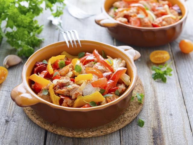 Във всяко гювече се поставя по една суп. лъж. доматено пюре, наръсва се с чубрица и се разпределя останалото масло. Добавят се лютите чушлета, маслините и по едно яйце. Гювечетата се похлупват с капачетата и се пекат във фурна до изпичането на яйцата./az-jenata.bg