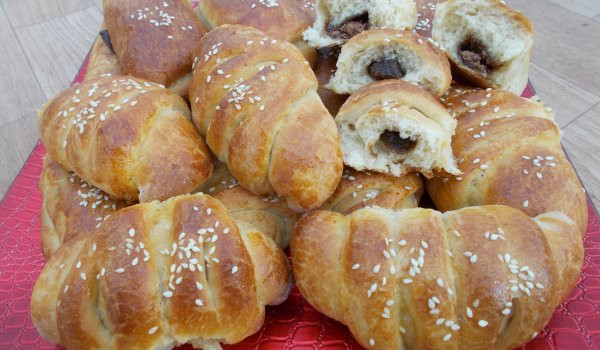 Втасват за още 15-20 минути и се намазва с разбит жълтък с 2 с.л. олио, поръсваме сусам. Печем кифличките на 180 градуса с вентилатор за 20 минути, после се пекат на 150 градуса за 5 минути без вентилатор. Изваждаме кифличките с мармалад и шоколад леко да се охладят и нападаме! Добър апетит!/gotvach.bg, Снимка: ВИЛИ-Виолета Матева