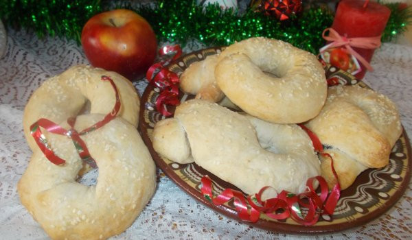 С намазнени с олио ръце се оформят дълги фитили 35-40 см и двата края се усукват. Нареждат се гевречетата върху хартия за печене. Може да се оформи и геврече, като се разточи на фитил с дължина 25 см и двата края се свързват. Отгоре кравайчета за коледари се поръсват с малко сусам. Печем кравайчетата в загрята фурна 180°C около 25-30 минути и готово/ Снимка: ВИЛИ-Виолета Матева, gotvach.bg/