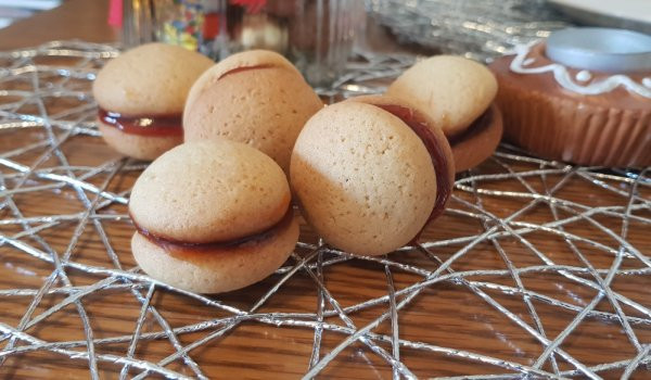НЕОБХОДИМИ СЪСТАВКИ брашно - 2 ч.ч. яйца - 1 бр. захар - 1/2 ч.ч. олио - 1/2 ч.ч. мед - 2.5 с.л. сода бикарбонат - 1 ч.л. оцет - 1/2 с.л. ванилия - 1 бр. шипков мармалад - за слепване НАЧИН НА ПРИГОТВЯНЕ Яйцето разбиваме със захарта с помощта на миксер или бъркалка. Добавяме мед, ванилията, содата, оцета и най-накрая олиото на струйка. След това добавяме брашното и омесваме тестото.