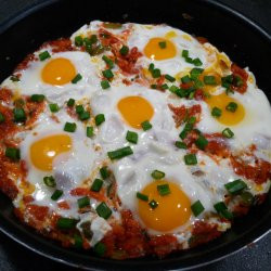 Оставяме миш-маша да къкри непокрито, докато яйцата леко се сварят за 8-10 минути.