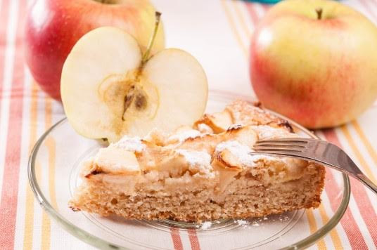 В тава или форма за печене с диаметър 22-24 сантиметра. Измивате, почиствате и обелвате ябълките. Нарязвате ги на кубчета и ги разпределяте равномерно върху тестото.