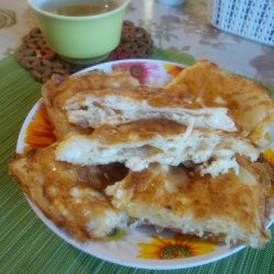 Приготвя се плънка от разбити яйца, кисело мляко с разбита в него сода за хляб, натрошено сирене.