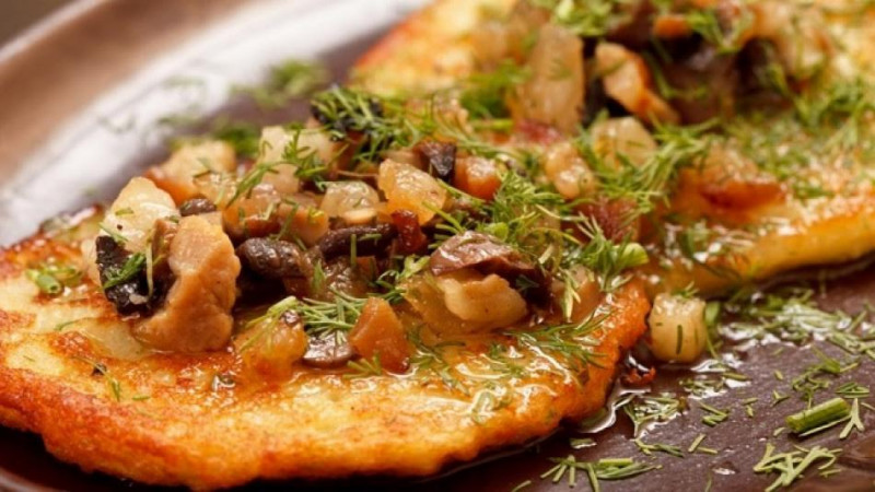 Намажете тигана с растително масло. Изсипете част от сместа в тигана. Аз обичам палачинката да не е много дебела, защото тогава картофките се изпържват по-добре. Пържете от двете страни до получаване на златиста коричка.