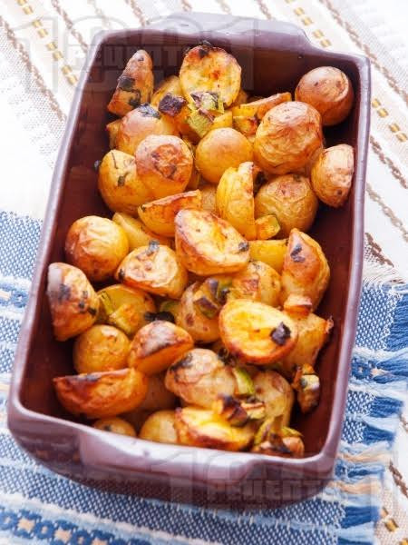Печени пресни картофи с тиквички и магданоз
