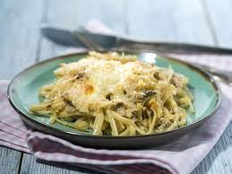 Пилето Тетрацини се пече в предварително загрята фурна на 180°C около 35-40 минути, докато повърхността стане златиста и апетитна. Оставя се да почине 5 минути преди сервиране.