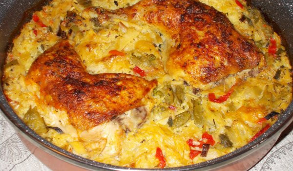 Пилешки бутчета с праз и китайски микс