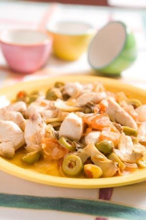 • Пилешкото с маслини и гъби се разпределя по чинии и се поднася./ gotvetesmen.com/