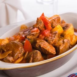 Месото се измива и нарязва на малки парчета. Задушава се в мазнината.