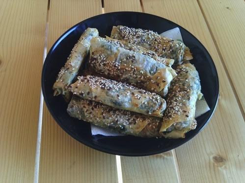 Използваме дебели турски кори за бюрек с триъгълна форма.