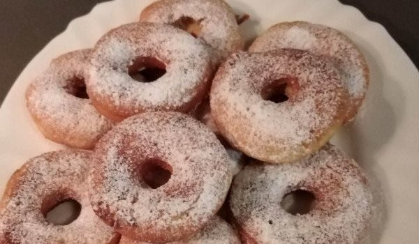 НЕОБХОДИМИ СЪСТАВКИ яйца - 2 бр. брашно - 700 г кисело мляко - 1 ч.ч. захар - 2/3 ч.ч. сода - 1 ч.л. бакпулвер - 1 ч.л. ванилия - половин ампула на д - р Йоткер олио - за пържене пудра захар - за поръска НАЧИН НА ПРИГОТВЯНЕ Разбърквам с тел киселото мляко с яйцата. Добавям содата и бакпулвера и разбърквам. Добавям киселото мляко, захарта и ванилията.