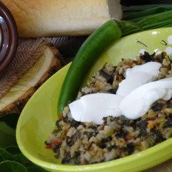 Сервираме копривата и кафяв ориз топла, гарнирана с домашно квасено кисело мляко.gotvqch.bg