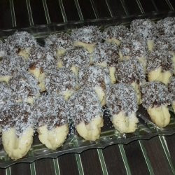 Всяка от бабините сладки се потапя в разтопен шоколад и в кокосови стърготини. По желание може да се слепят с мармалад по избор и пак да се тункват в шоколад и кокос.