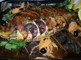 В тавичка и върху лозови пръчки слагаме напълнения шаран, а отгоре му нареждаме парченца лимон, който имитира люспите на шарана.
