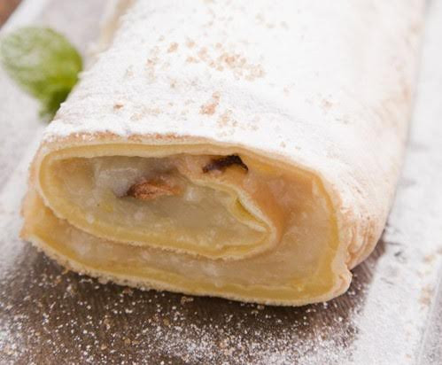5. С помощта на кърпата блатът се навива на руло, слага се в чиния и се наръсва с пудрата захар.