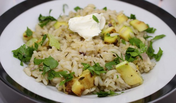 Съотношението ориз към течност е около 1:3. Малко преди готовност на ориза прибавяме подправките.