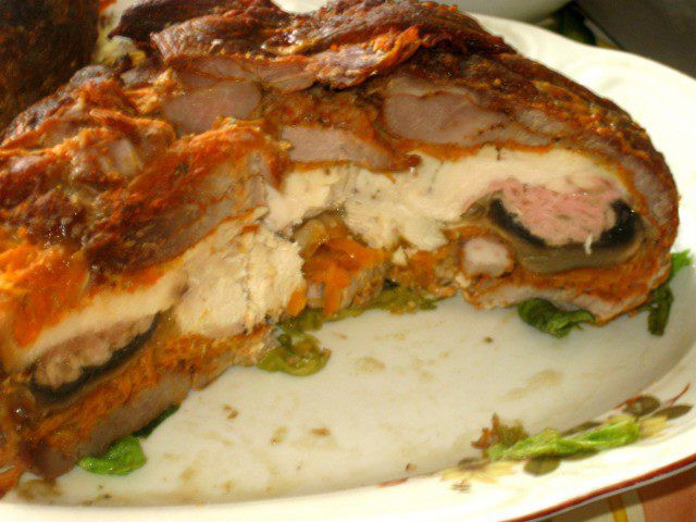 Върху лука и морковите, подредете пълнените гъби.