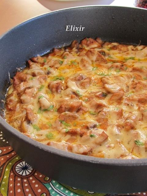 Маха се капакът, за да поизври соса за още 5 мин. Ако все още е рядък, се сгъстява с 1ч.л. брашно или натурално нишесте, размито в малко вода, на гъста каша.