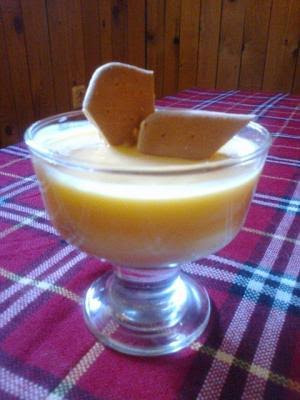 • В десертни купички натрошавате по една бисквита и пълните с готовата смес.