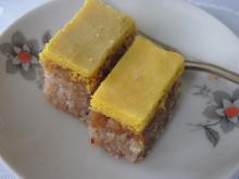 След като се извади от фурната се залива с крем, който приготвям от 4 жълтъка, разбити с пудрата захар.