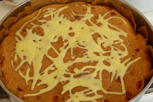 Сместа се изсипва в намаслена и набрашнена тава и се пече в предварително загрята умерена фурна.