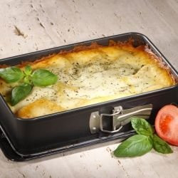 Задушавайте, докато доматеният сок не се изпари. През това време сварете и картофите, след което ги направете на пюре с малко сол, масло и прясно мляко. Сварете яйцата и ги нарежете на кръгчета.