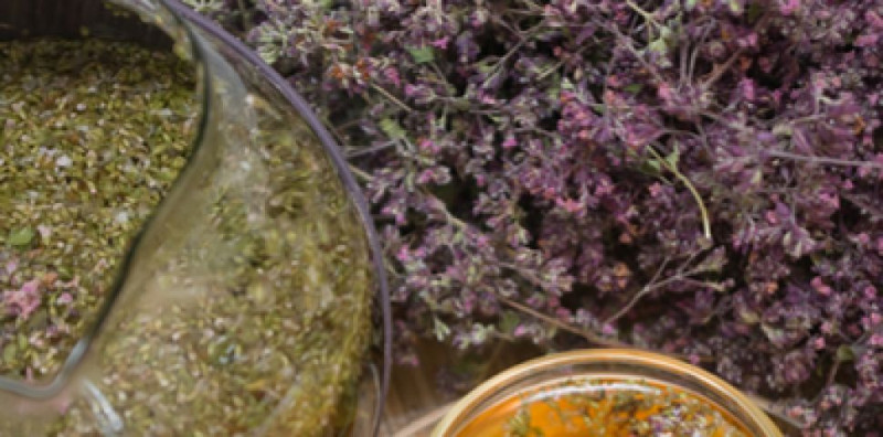 Химичен състав. Риганът съдържа 0,5 – 1,5% етерично масло с главни съставки тимол и карвакрол (до 50% от състава на маслото). В по-малки количества се съдържат р-цимол, мирцен, оцимен, алфа-пинен, алфа-кариофилен и др. Дрогата съдържа още танини, гликозиди, витамин С и др./puls.bg/